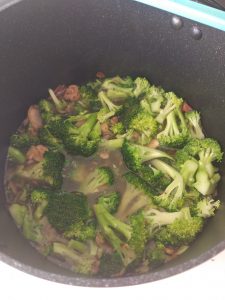 - Preko svega prelijte oko 400 ml vruće vode te dodajte brokulu i pola žličice soli te kuhajte oko 5 minuta.