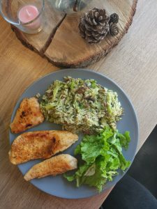 - Poslužite uz piletinu i salatu. Dobar tek!